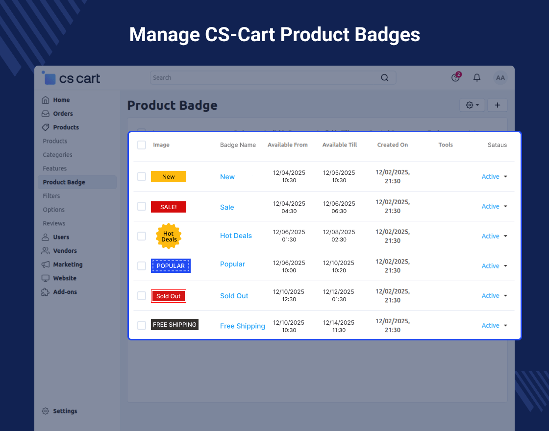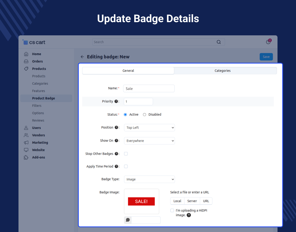 CS-Cart Product Badges add-on enables admins to add custom badges to products for effective promotion and emphasis.