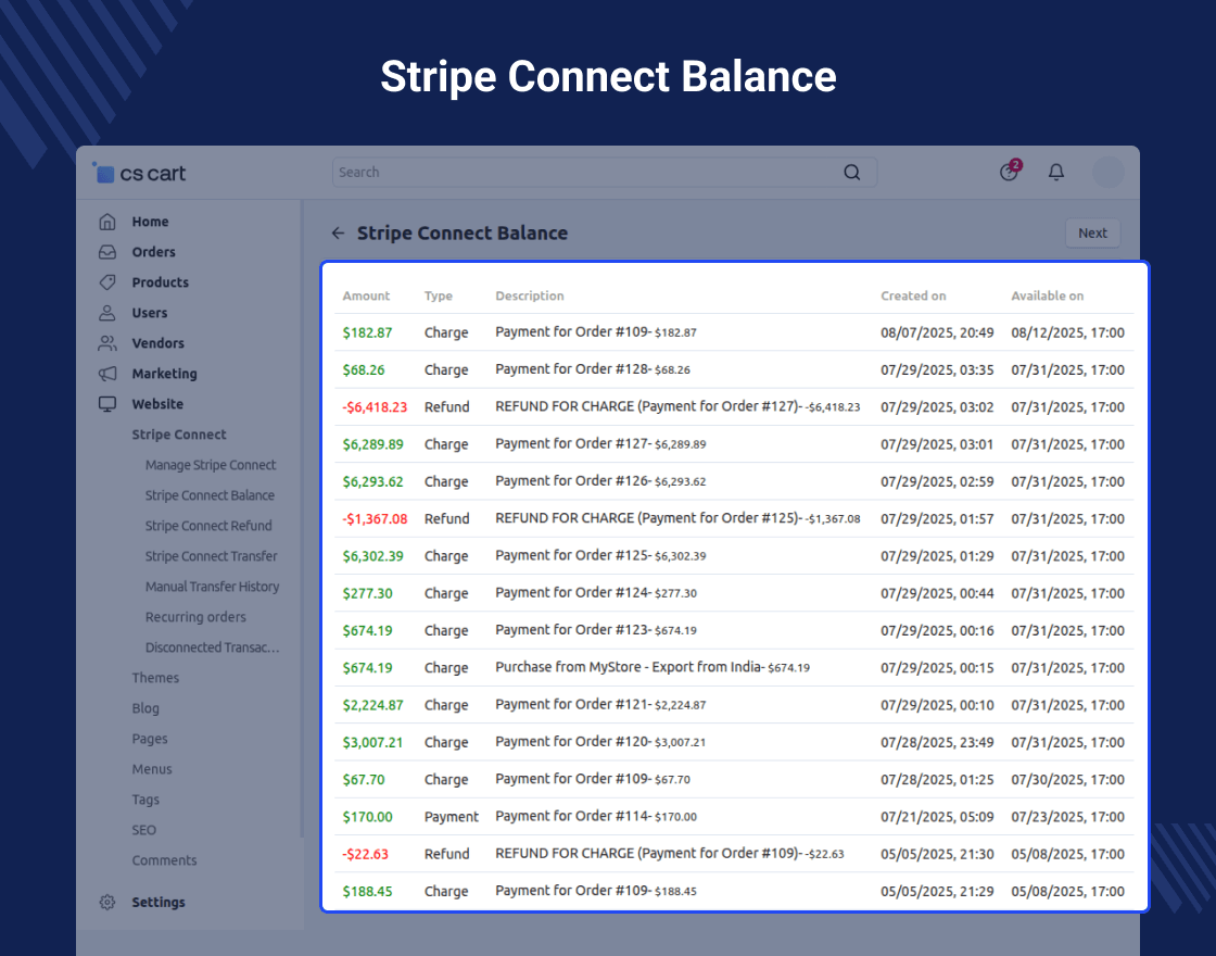 - CS-Cart Stripe Connect allows you to refund the payment as partial or complete.