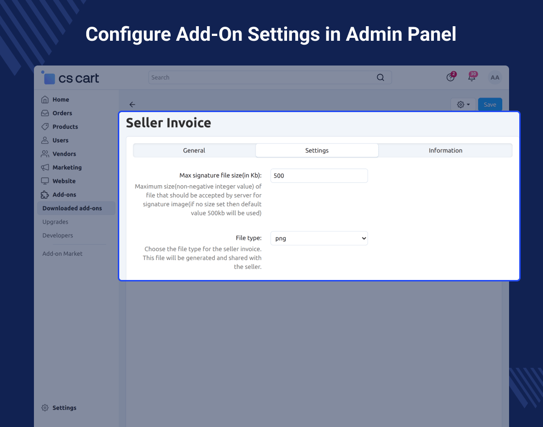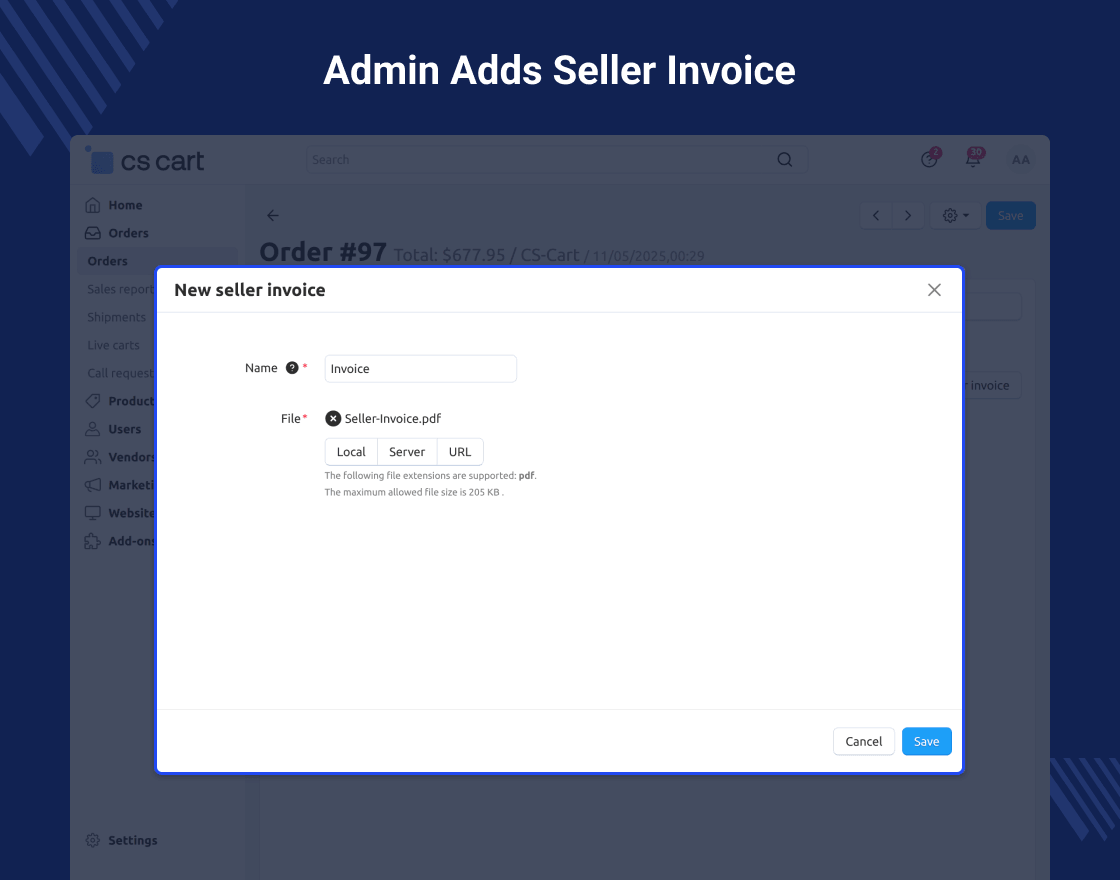 CS-Cart Seller Invoice Add-on: After placing an order, customers often want a proper record of their purchase, such as an invoice or receipt. This add-on allows the admin and sellers to attach invoices directly to their orders.