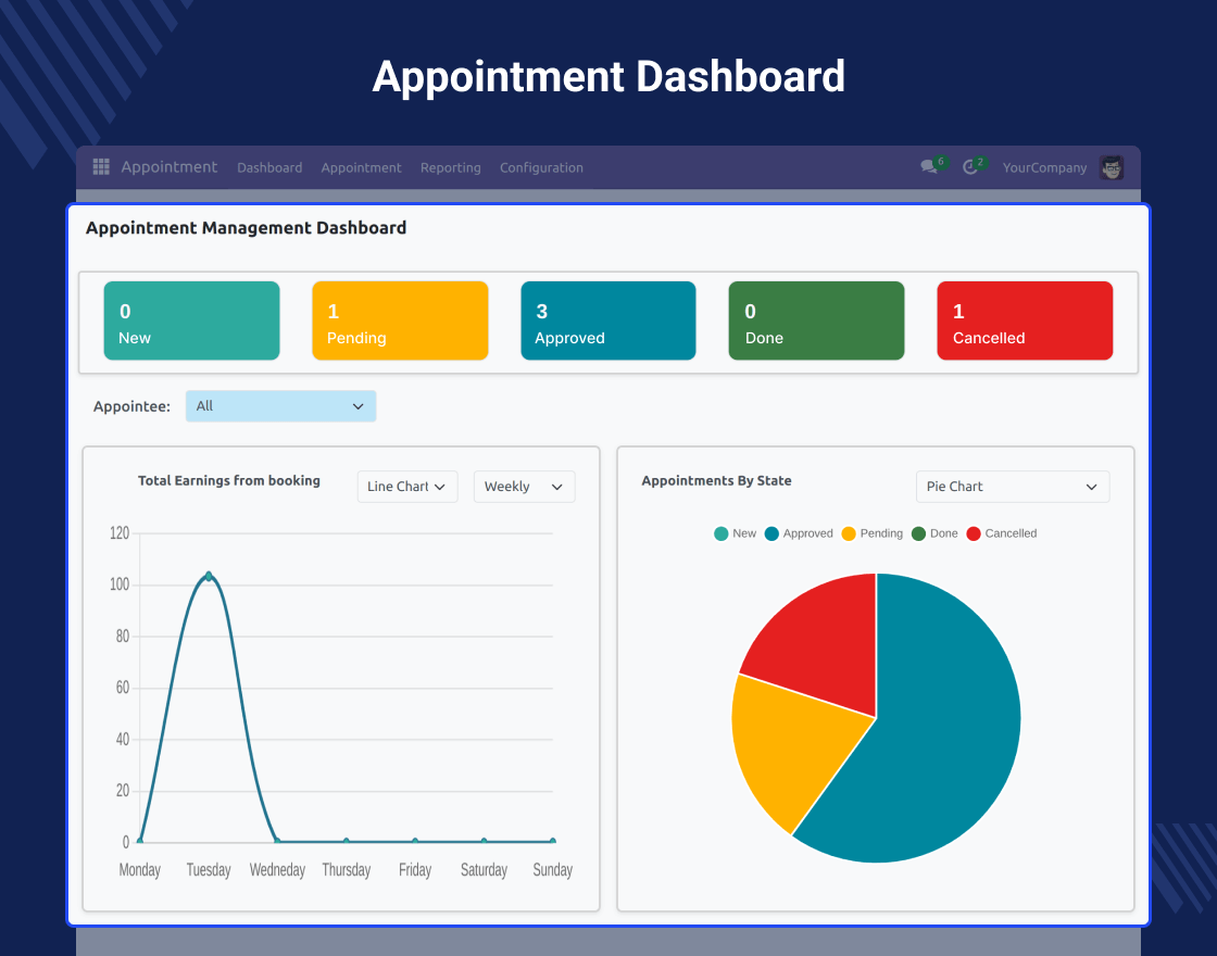 With the new visual reports and earnings insights, admins can easily understand how the business is performing. These tools help plan resources efficiently, forecast busy times, and identify when most appointments occur.