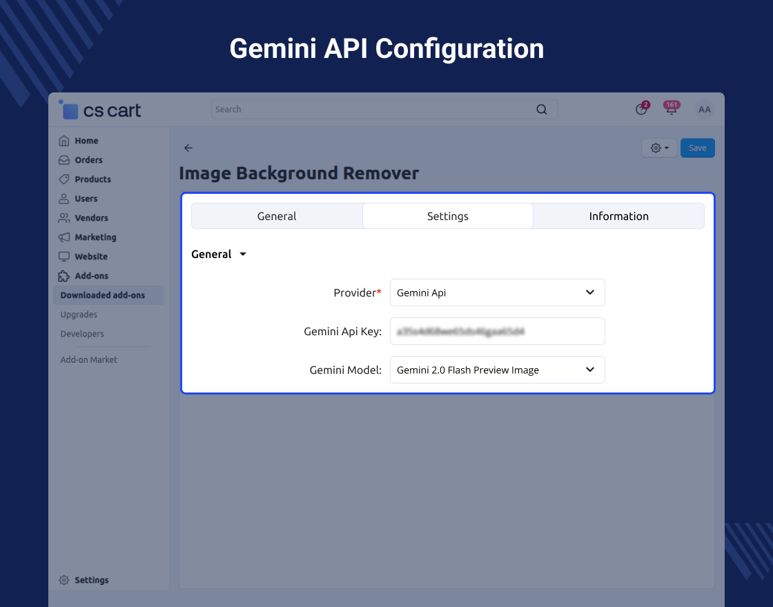 CS-Cart Image Background Remover – Gemini API Settings