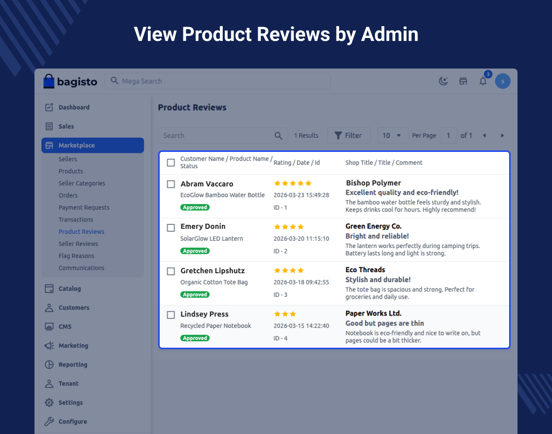 Admin can Manage Product and Seller Review