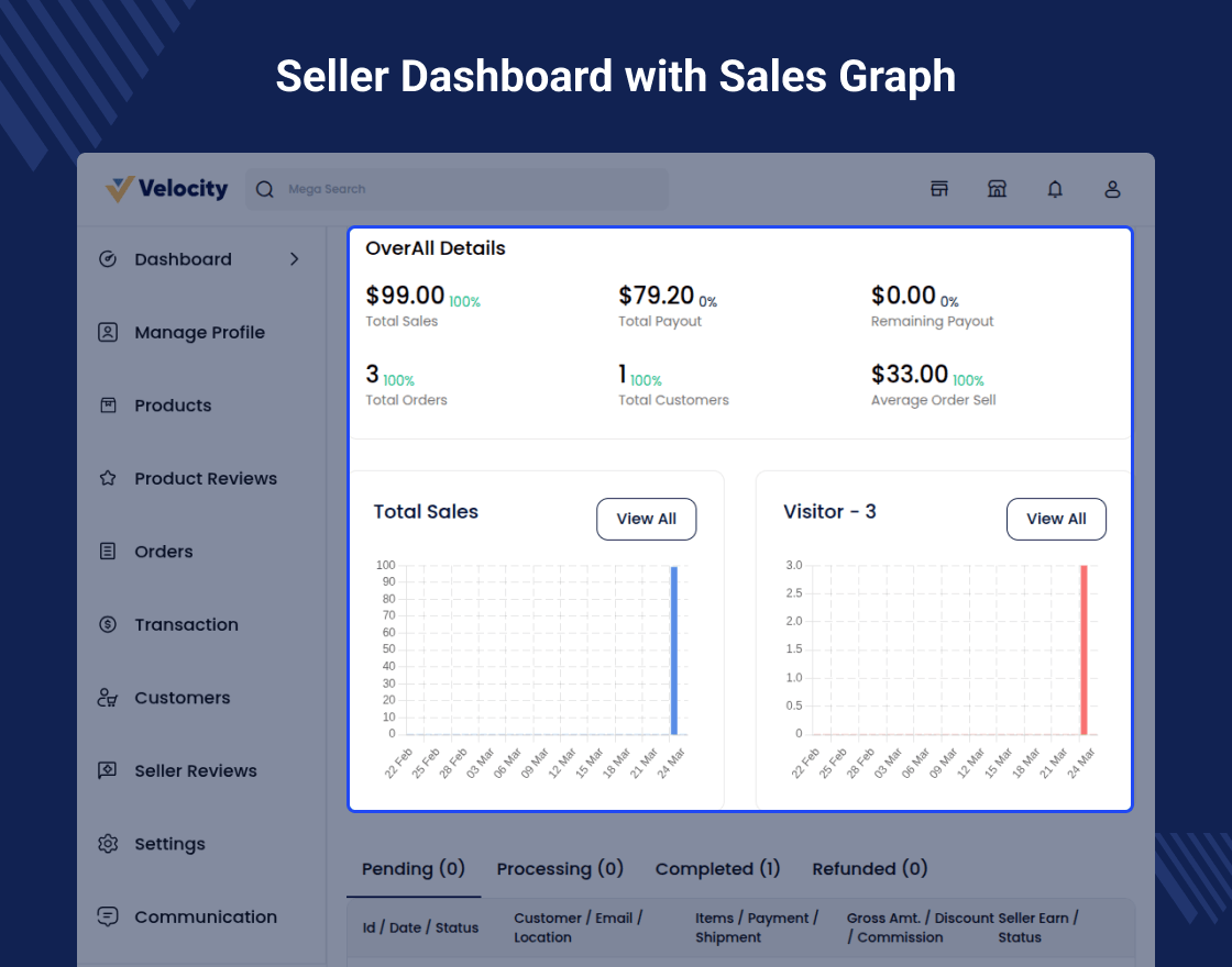 - Latest order at vendor dashboard and order management.