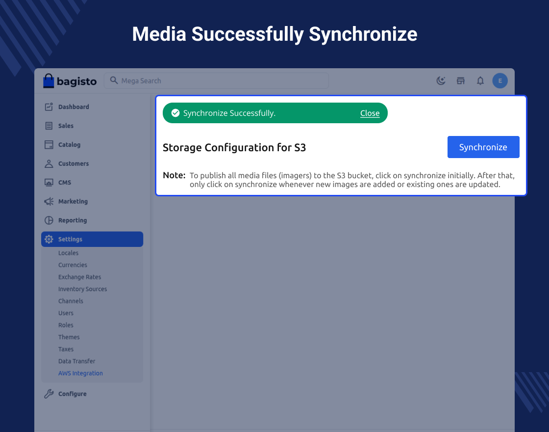 The admin can synchronize store media files to the S3 bucket smoothly.