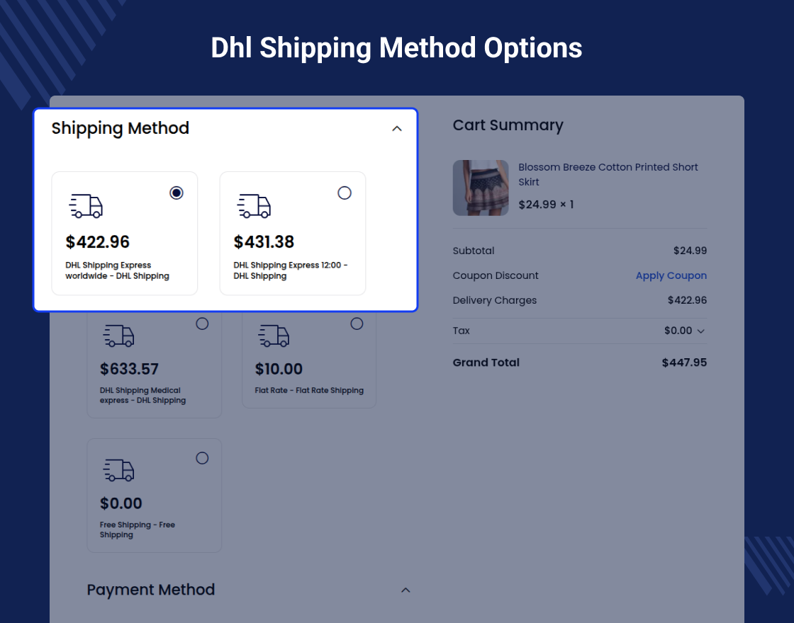The admin can enable the DHL shipping method so that customers can choose it during checkout.