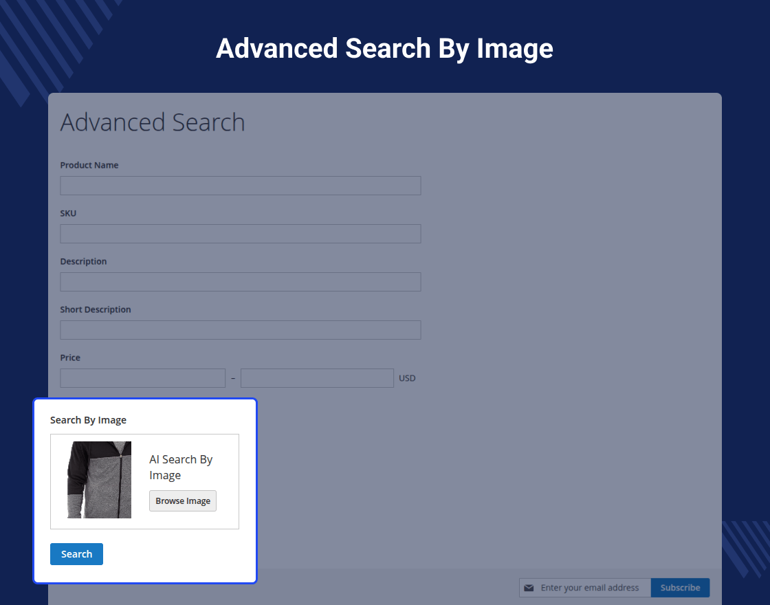 Magento 2 AI Image Search extension uses an Artificial Intelligence(AI) technique and allows users to search for products using images.