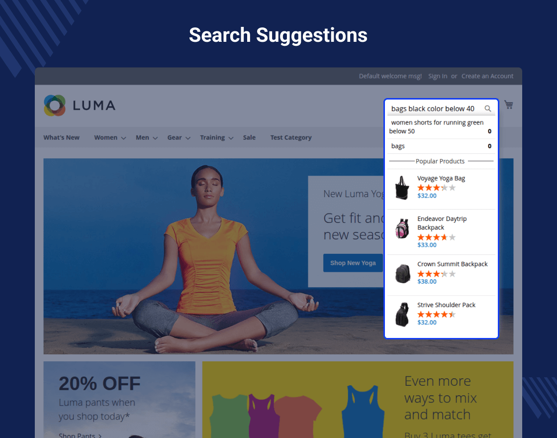 If customers enter any complex queries in the search bar about a product it uses a machine learning-based search. Magento 2 Intelligent search powered by NLP and machine learning which will interpret the meaning of user queries.