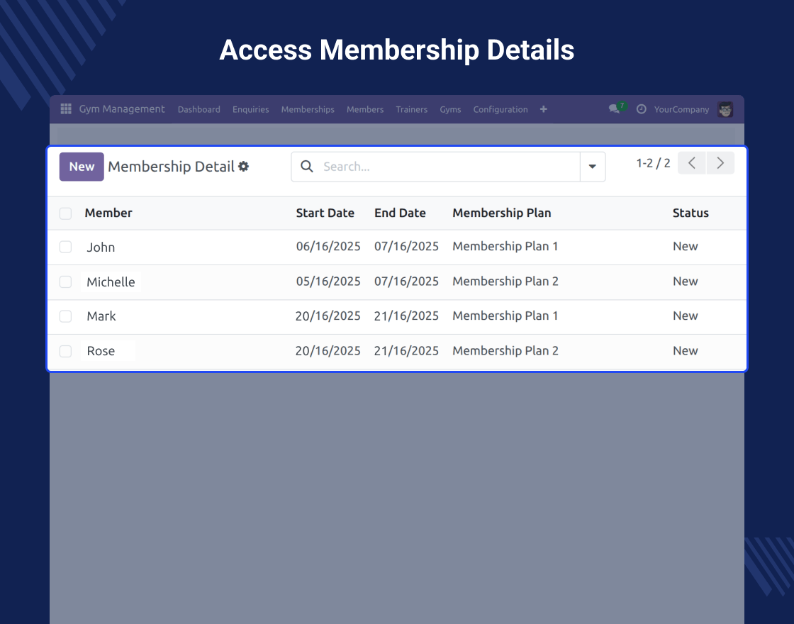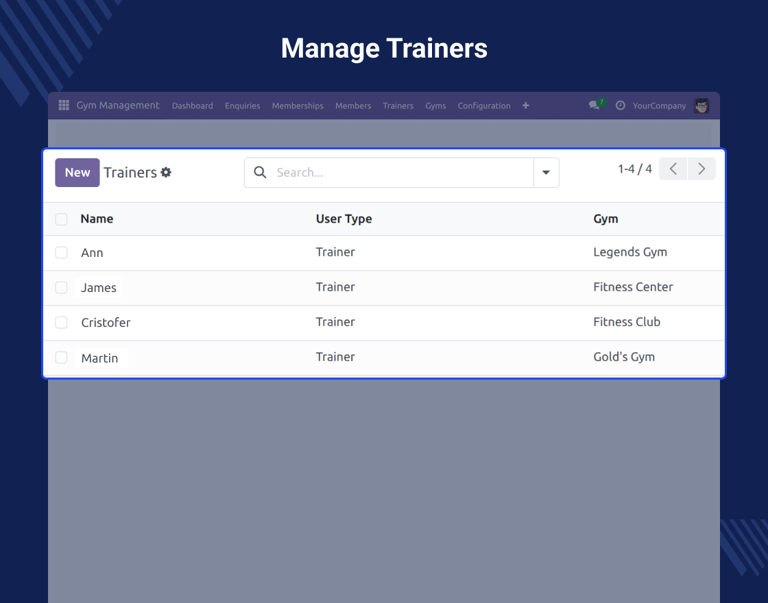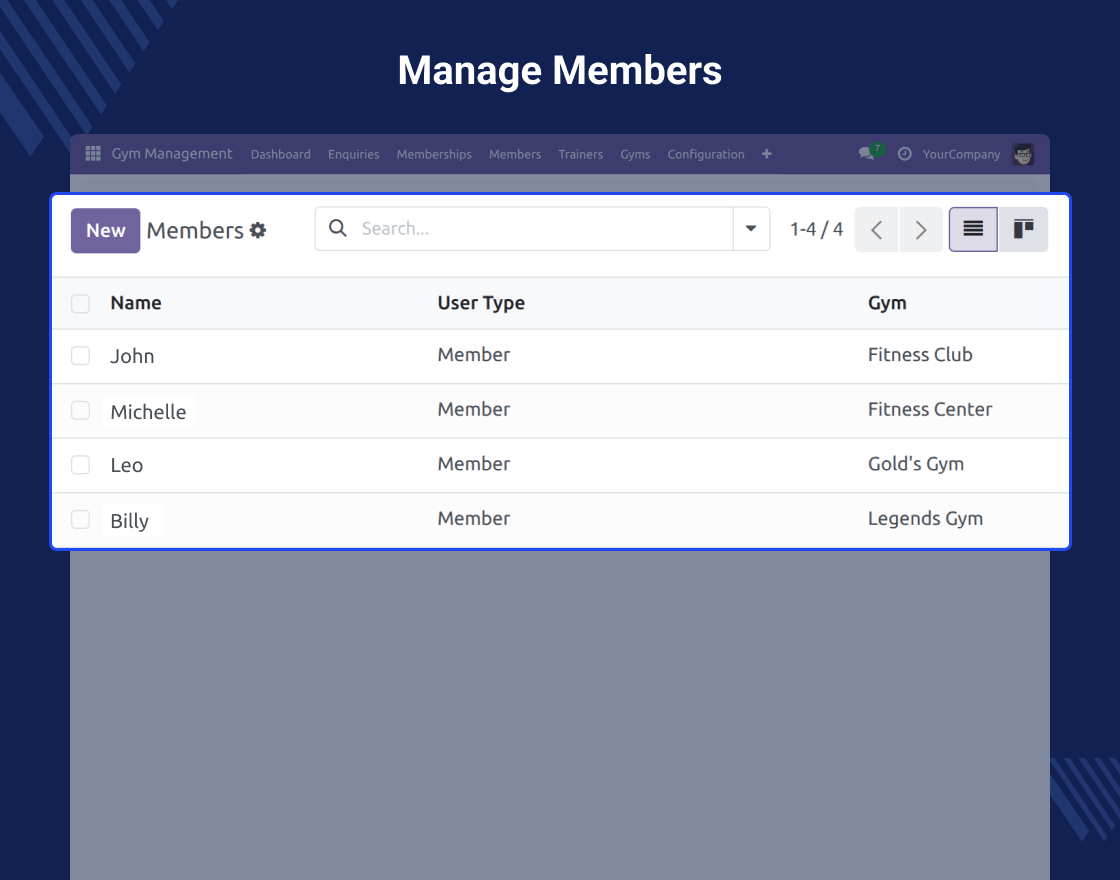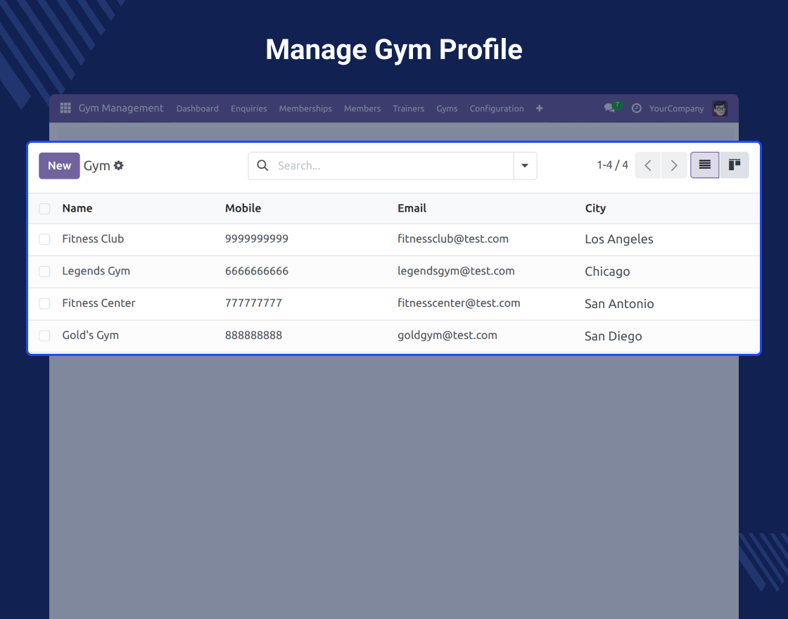 - Centralized view of gym data