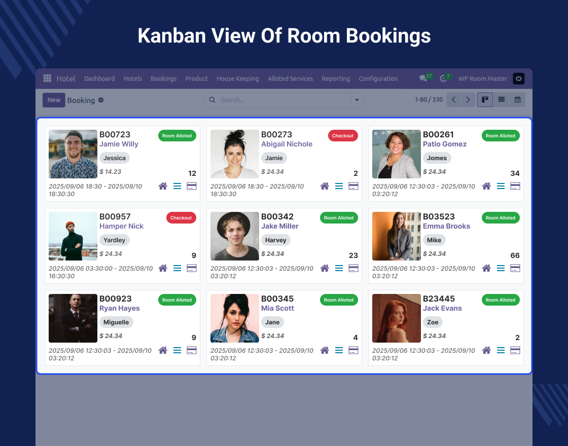 Odoo Hotel Management System is a complete hotel management system software that manages bookings, rooms, billing, housekeeping, and guest services in one place.