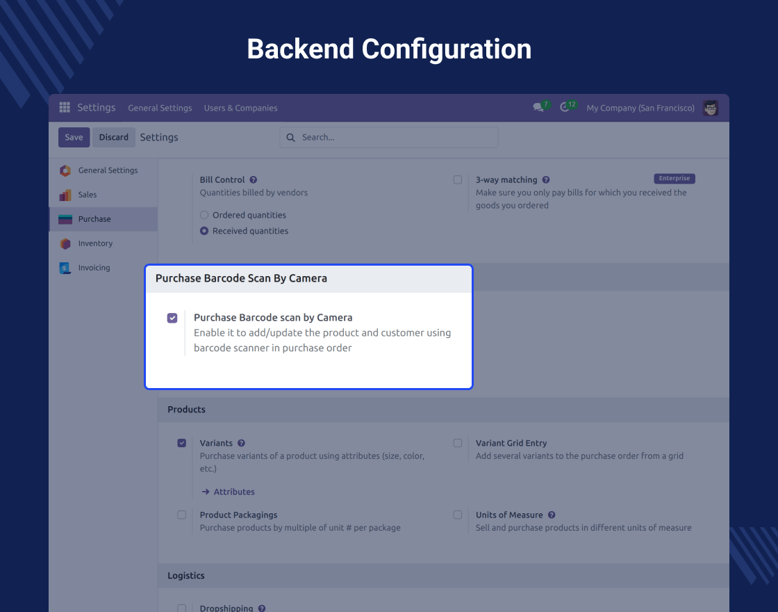 This module lets admins easily turn the barcode scanning feature on or off. You can change it based on the needs of your business.