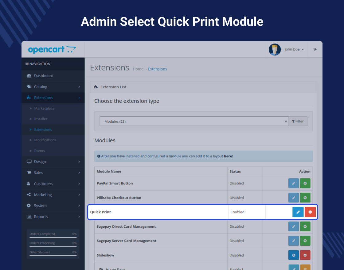 Opencart Quick Print speeds up order processing by enabling bulk printing of invoices and shipping labels. It works with any printer and is easy to set up, making it perfect for businesses of all sizes.
