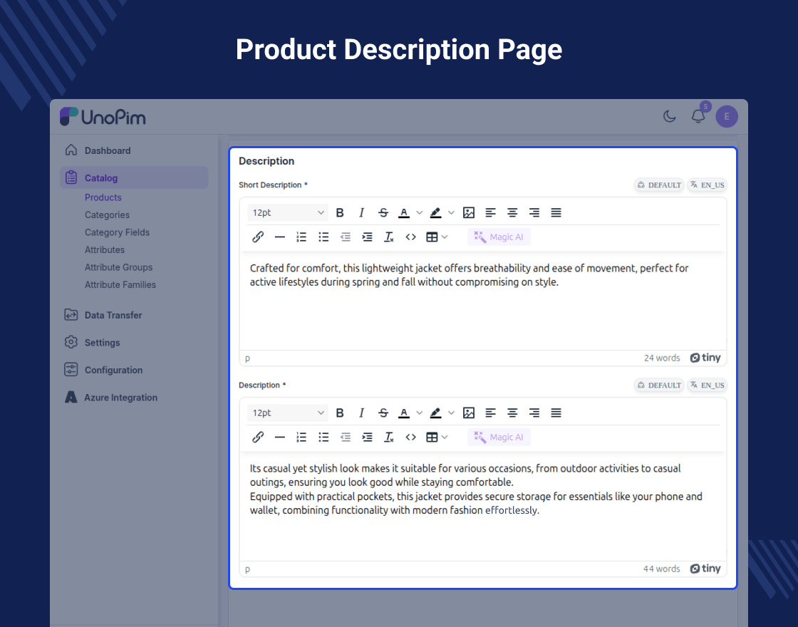Highlighted Features of UnoPim Azure Integration