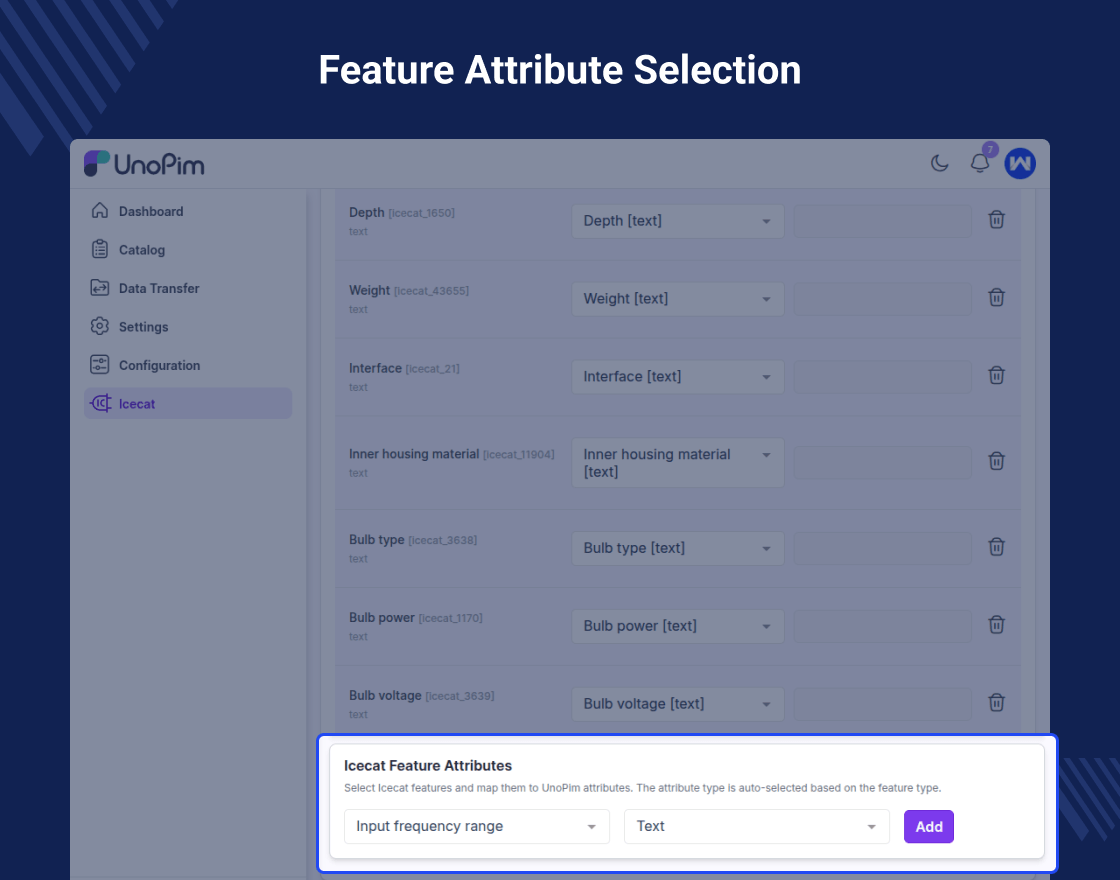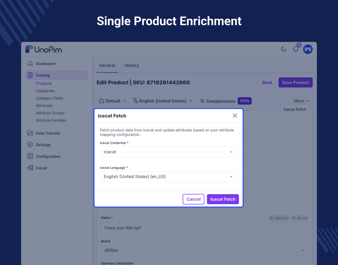 Import technical attributes directly from Icecat to speed up catalog setup.