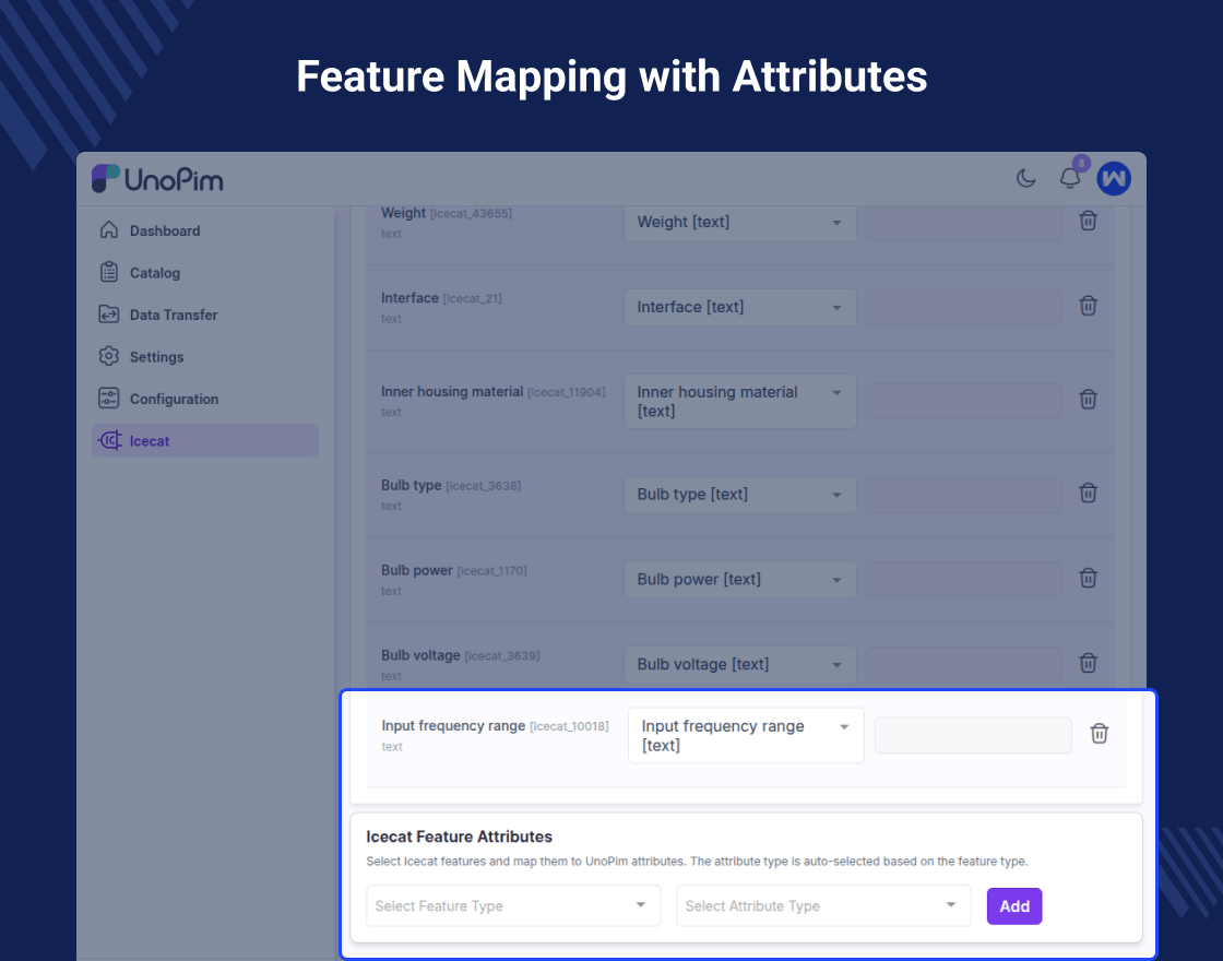 Link Icecat technical features with UnoPim attributes for better structure.