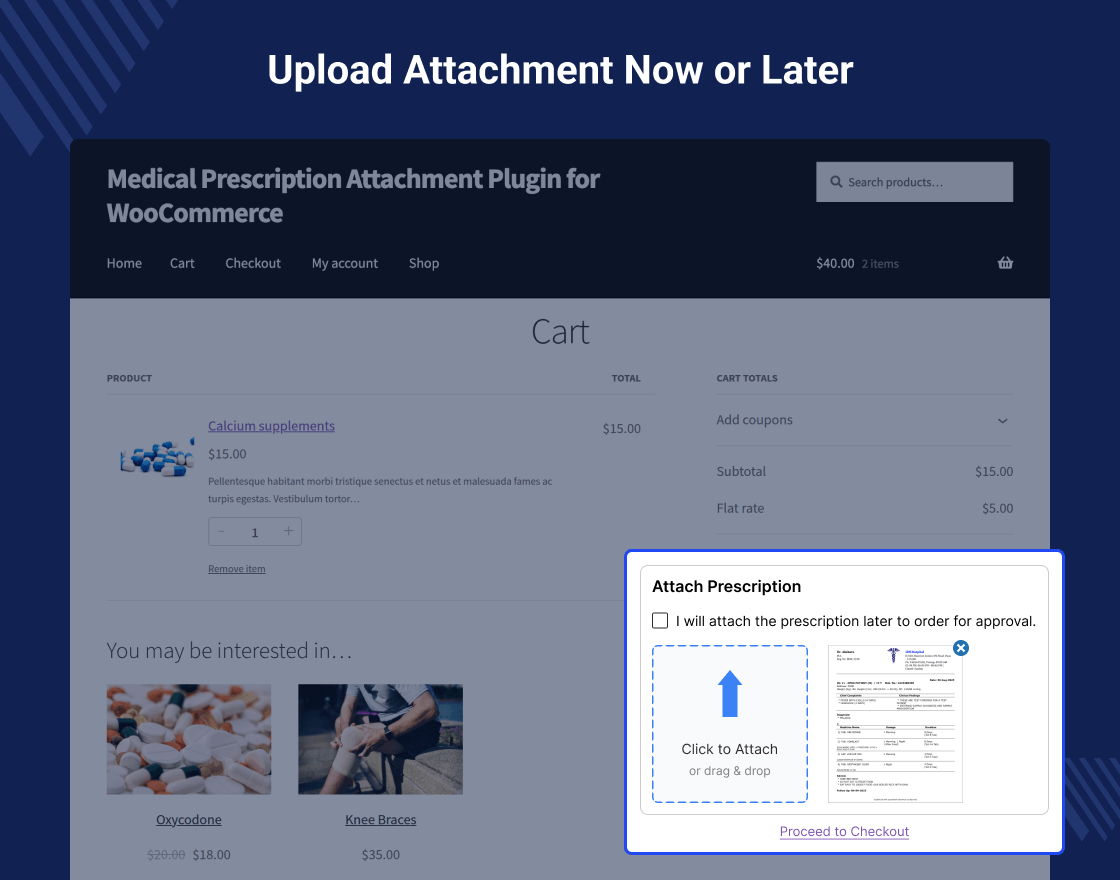WooCommerce Order Attachments have created the file upload feature for the pharma retailer website. Using this plugin, the customers will be able to buy medicines from an online pharma shop by uploading a prescription for the medicines that require one.