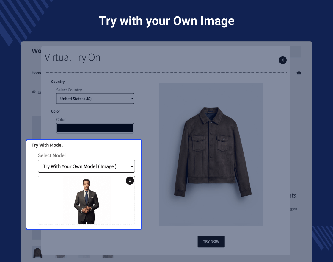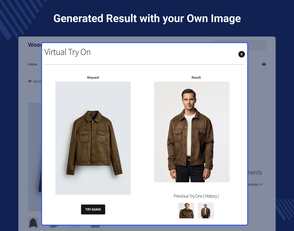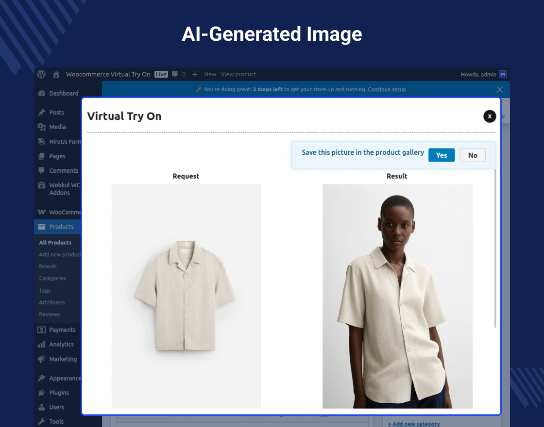 - The plugin generates a real-time preview of how the product looks on the selected model or image.